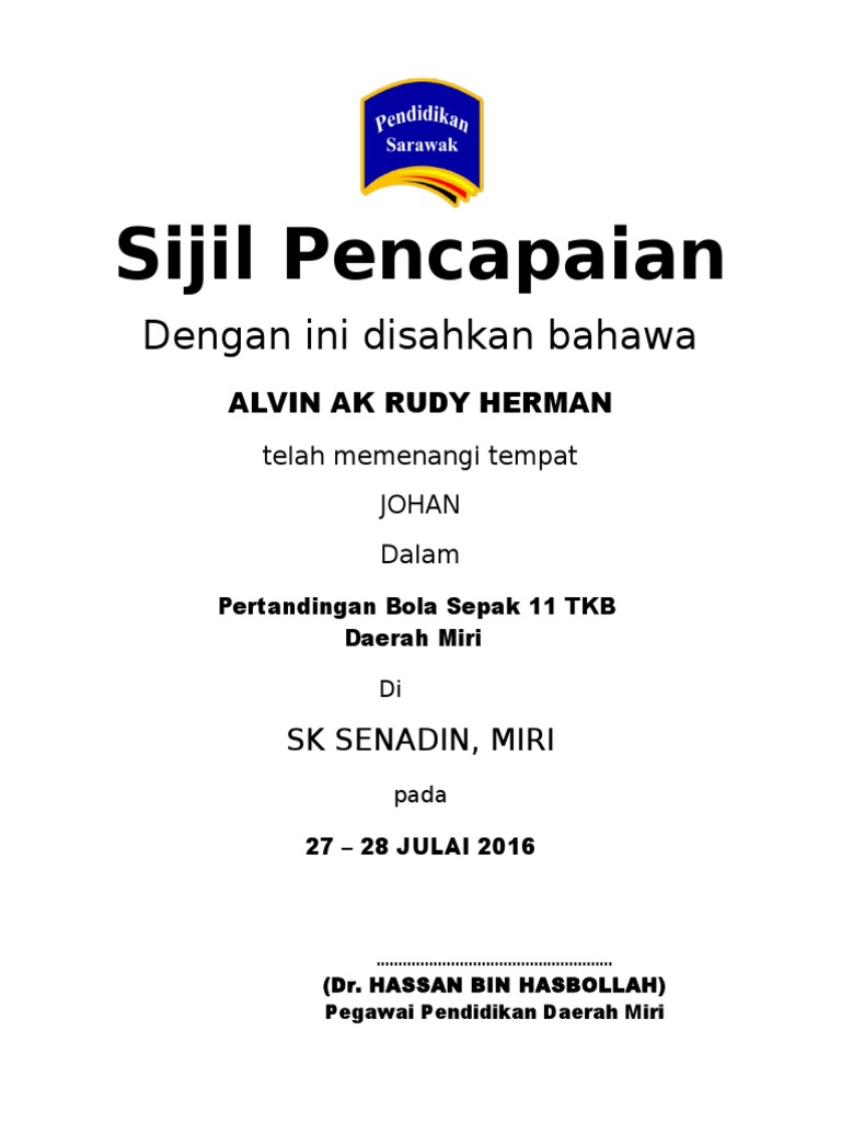 Contoh Sijil Pencapaian Kedudukan Pdf